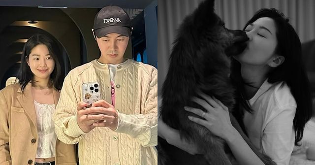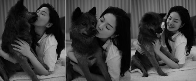공개된 사진 속 류이서는 늠름한 자태의 중형견 '만세'를 품에 안고 행복한 미소를 짓고 있다.