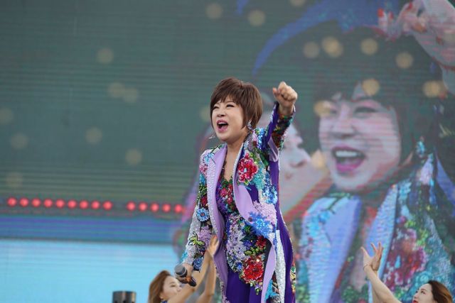 2019년 10월 12일 전북 진안군에서 홍삼축제가 열리고 있는 가운데 '대한민국 트로트 페스티벌'에서 가수 김연자가 히트곡 '아모르파티'를 부르고 있다. / 뉴스1