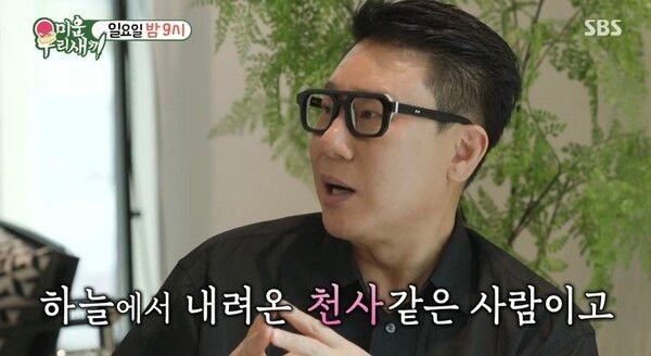 이상민은 아내에 대해 "하늘에서 내려온 천사 같은 사람이다"고 소개했다. 서장훈은 "왜 그런 분이 너랑 결혼하냐"고 했다.