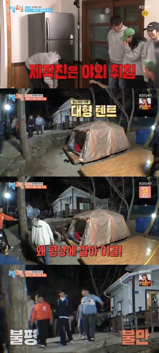 (엑스포츠뉴스 원민순 기자) '1박 2일' 멤버들이 제작진용 야외취침에 발끈했다.