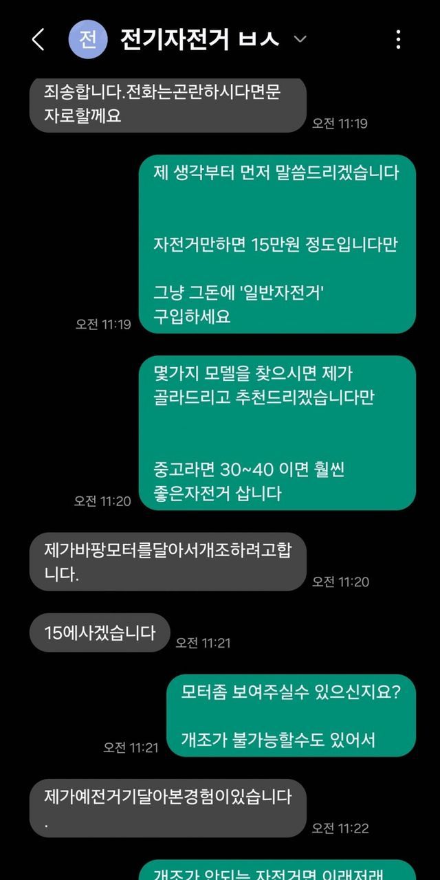 좀더 좋은 프레임에 모터 달아서 개조하는게 낫다고 곱게 말렸는데 저 ㅂㅅ은 진짜 이해 불가능이였다.