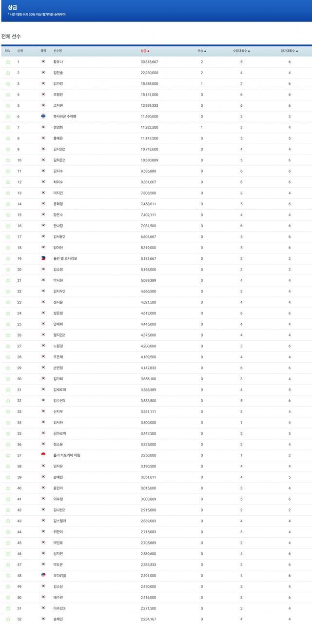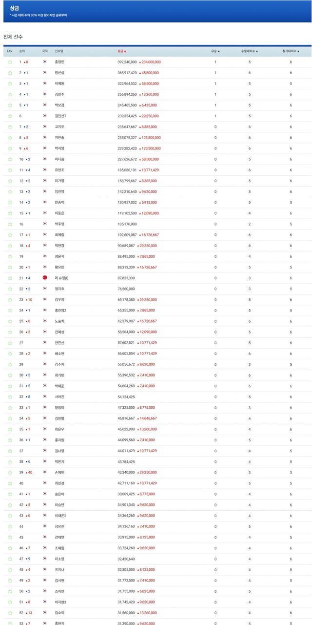 ■상금순위(제47회 KLPGA 챔피언십 종료 기준)