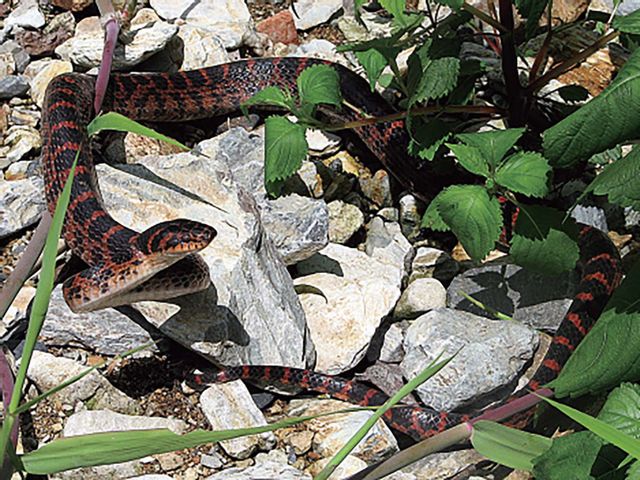한반도의 야산과 논밭, 돌무더기 사이에서 은밀히 움직이는 뱀 능구렁이. 붉고 검은 무늬가 선명한 이 능구렁이가 왜 '뱀 중의 왕'으로 불린다. 까치살무사 같은 맹독성 뱀마저 주식으로 삼기 때문이다. 능구렁이에 대해 알아봤다.