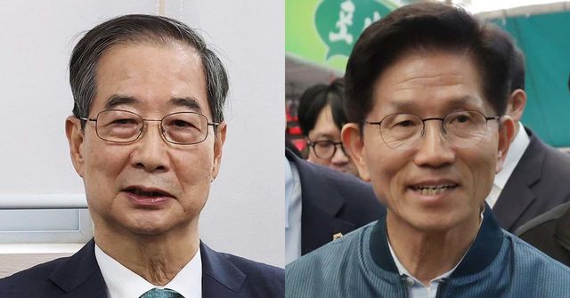 한덕수(왼쪽) 무소속 대선 예비후보와 김문수 국민의힘 대선 후보. / 뉴스1