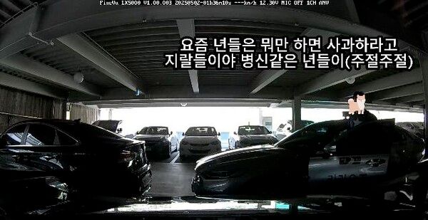 아내가 "30분 동안 전화도 안 받고 왜 그것도 못 미냐고 면박 주지 않으셨냐. 차 안 밀리는 거 봤으면 사과해야지 이게 무슨 경우냐"고 따지자, 그는 "내가 여기에 차 대놔서 빼줘야 하는 건 맞는데 뭘 사과하냐"면서 "이 병신 같은 X아. 어린 X들이 뭐만 하면 사과하라고 지랄이야"라고 욕설을 내뱉었다.