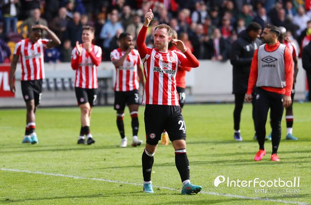 2021-22시즌 에릭센은 6개월 단기 임대로 브렌트포드에서 활약했다. 많은 경기를 소화한 것은 아니지만, 나름 무난한 경기력을 보였다. 기록은 11경기 1골 4도움.