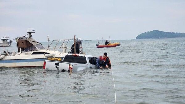 해경은 A씨가 보트를 선착장에 내리던 중 차량이 미끄러져 바다에 빠진 것으로 보고 정확한 경위를 조사하고 있다.
