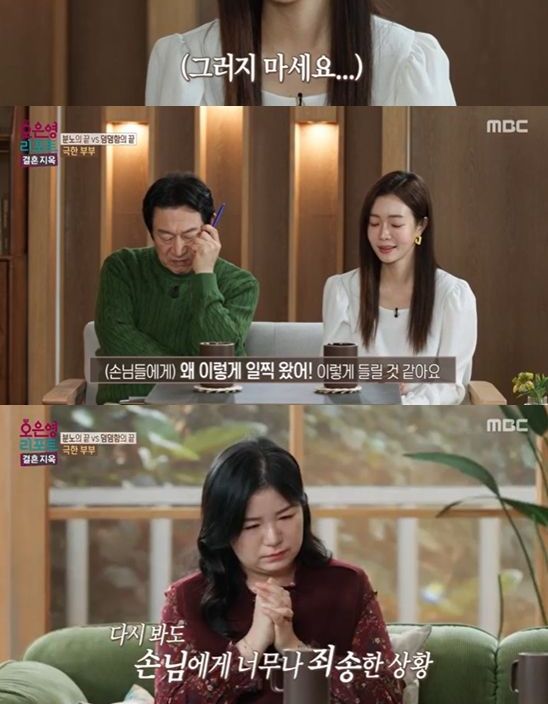 5일 방송된 MBC '오은영 리포트 - 결혼 지옥'에서는 365일 24시간 아내에게 극도로 분노 모드인 남편과 남편의 선을 넘는 분노에 무반응으로 일관하는 아내, ‘극한 부부’가 오은영 박사를 찾았다.