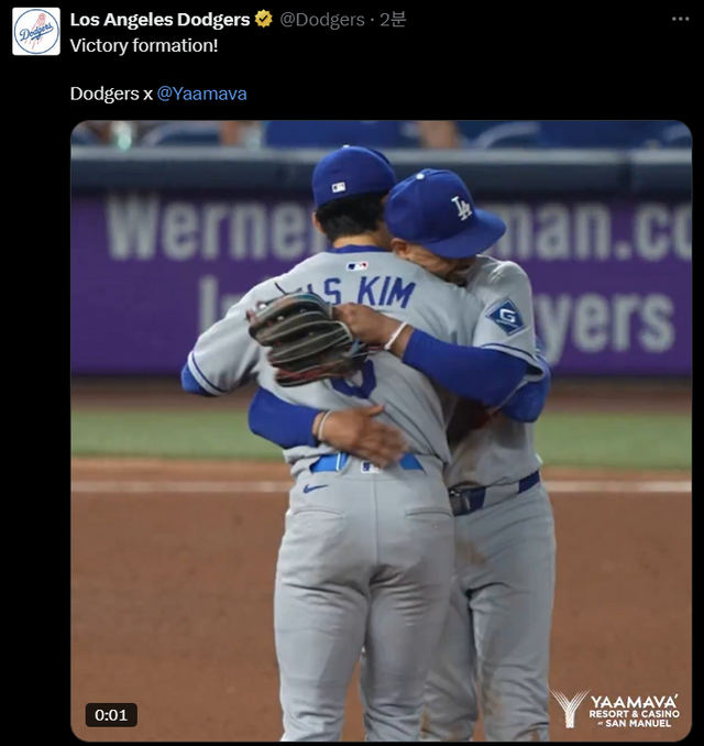 경기 후 다저스는 공식 소셜 미디어(SNS)를 통해 김혜성을 향한 '애정'을 과시했다. 경기 전 라인업 이미지에 이날 첫 선발 출전하는 김혜성의 사진을 넣더니, 경기 후엔 승리 영상 이미지 가장 먼저에 김혜성을 배치했고 이후엔 무키 베츠와 승리 세리머니를 하는 김혜성의 영상까지 게재했다.