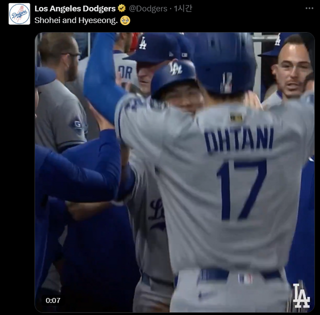 김혜성의 첫 안타 영상 역시 가장 먼저 게재하며 그의 활약을 조명하고 축하하기도 했다. 첫 득점 순간, 더그아웃에서 오타니의 축하를 받으며 들어오는 김혜성의 영상도 함께 게재했다.