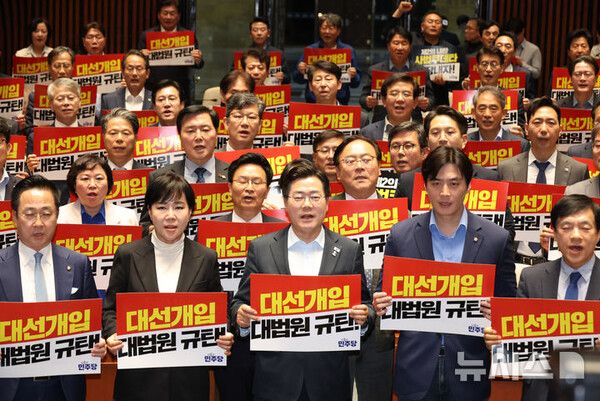 더불어민주당은 6일 "조희대 대법원장이 이재명 후보의 공직선거법 사건을 두고 파기자판을 검토한 의혹이 불거지고 있다"며 "사실이라면 대법원장이 내란세력의 꼭두각시임을 자인한 셈"이라고 밝혔다.