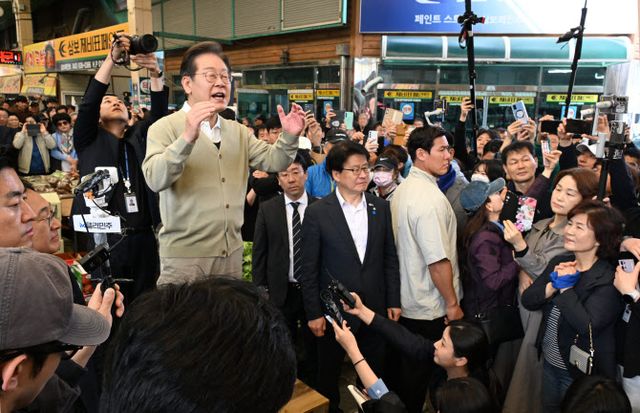 이 후보는 이날 충북 증평군의 한 전통시장에서 시민들을 만나 “가끔씩은 불의한 세력에 불의한 기도가 성공하기도 한다”며 이 같이 밝혔다. 자신에 대한 지난 1일 대법원 판결을 권위주의 정권 시절 ‘사법살인’으로 치부되는 이들 사건과 동일선상에 두는 듯한 발언이다.