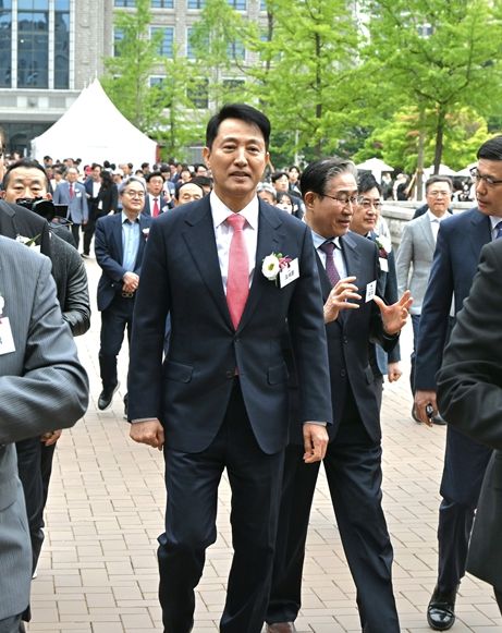 오 시장은 “고려대는 1905년 희망의 등불을 밝히며 세상을 향한 문을 연 후 120년 동안 대한민국의 성장과 함께하며 지성과 양심을 갖춘 수많은 인재를 길러냈다”고 말했다. 이어 “인류의 미래 사회 공헌이라는 고려대 비전은 서울시가 그리는 미래감성도시 비전과도 맞닿아 있다”며 “새로운 미래를 향한 도전 속에서 고려대와 서울시가 함께 손잡고 나아갈 수 있기를 기대한다”고 밝혔다.