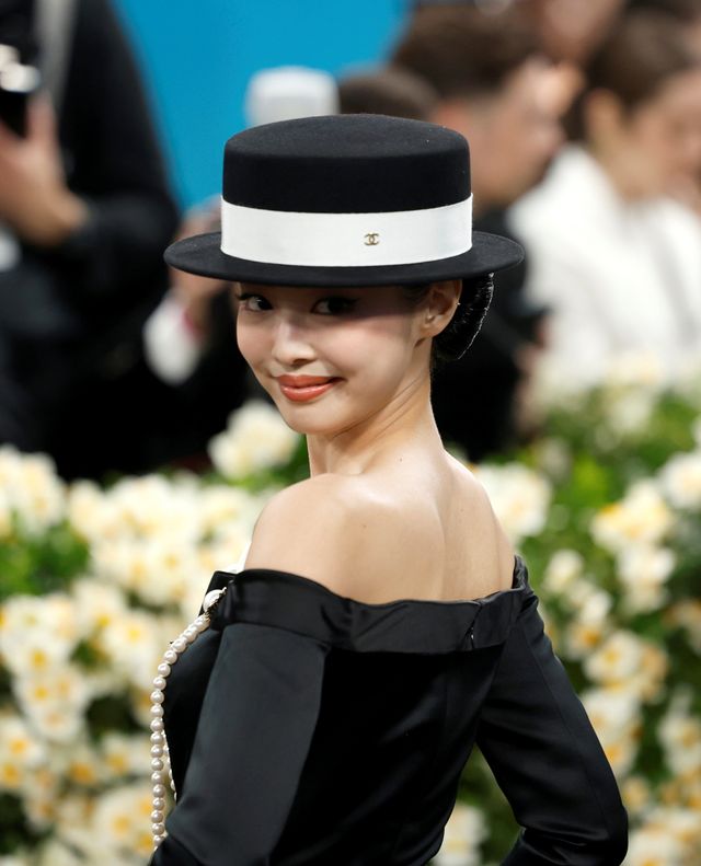 3년 연속 '멧 갈라'를 빛내고 있는 제니는 올해도 '인간 샤넬'의 면모를 자랑했다. 제니가 입은 오프숄더 블랙 드레스는 화이트 포인트가 가미된 모던한 라인이 특징이며, 특히 가슴 부분에는 샤넬의 상징인 까멜리아 플라워 장식이 더해져 고급스러운 분위기를 연출했다.