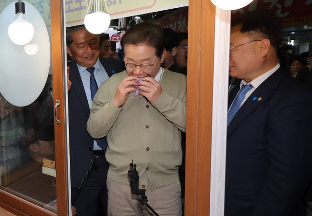 이 후보의 차분한 대응과 대조적으로 민주당은 긴급의원총회를 개최해 대법 판결 직후 대법원을 강력 규탄했지만, 이 후보는 이날 오후부터 예정됐던 ‘골목골목 경청투어’ 일정을 그대로 소화했다.