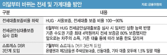 HUG는 6월부터 전세금 안심대출 보증 심사에 임차인의 상환 능력도 반영한다. 기존에는 수도권 기준 최대 4억원까지 전세 보증금의 80%를 보증했지만 앞으로는 차주의 소득, 기존 대출 등에 따라 보증 한도가 달라진다.