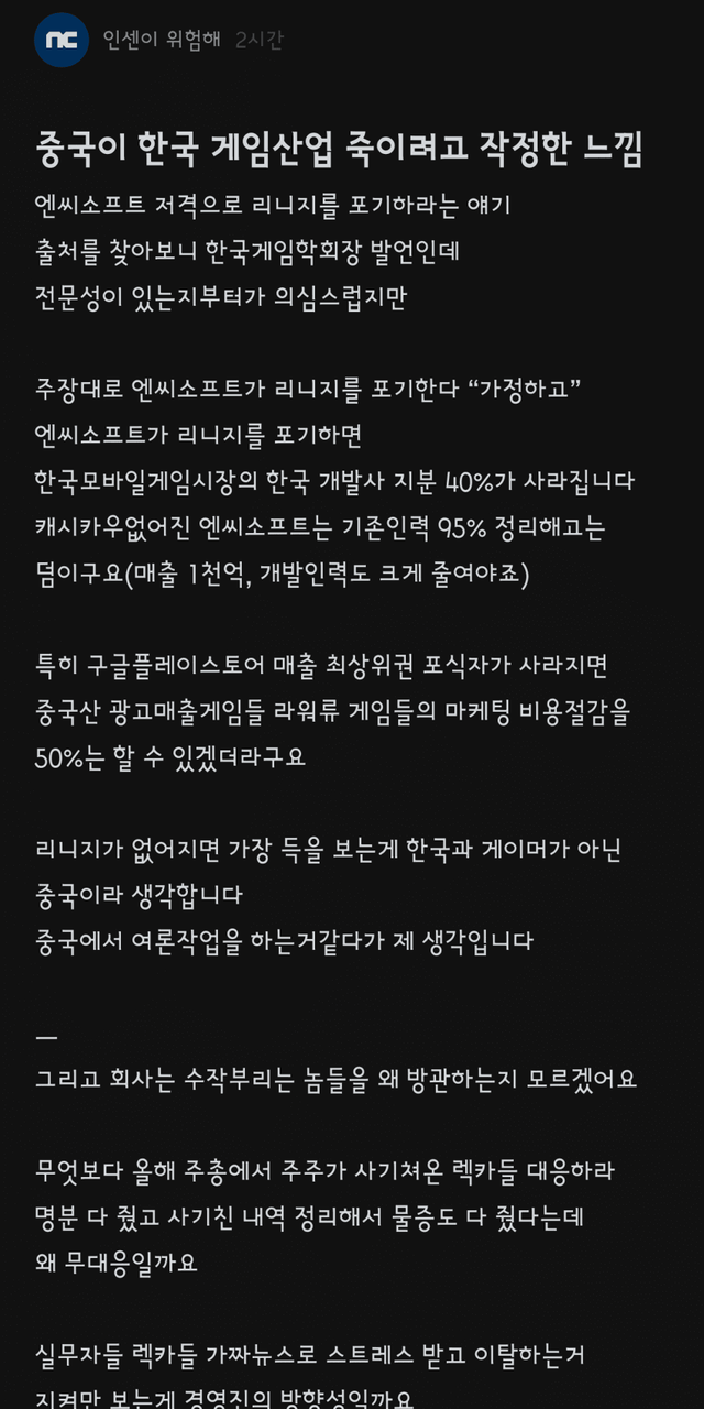 리니지, 그리고 엔씨가 망해야 한국 게임산업이 살수있다고