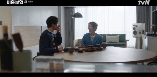 (엑스포츠뉴스 이이진 기자) '이혼보험' 이동욱과 이주빈이 하룻밤을 보내고 함께 아침 식사를 했다.