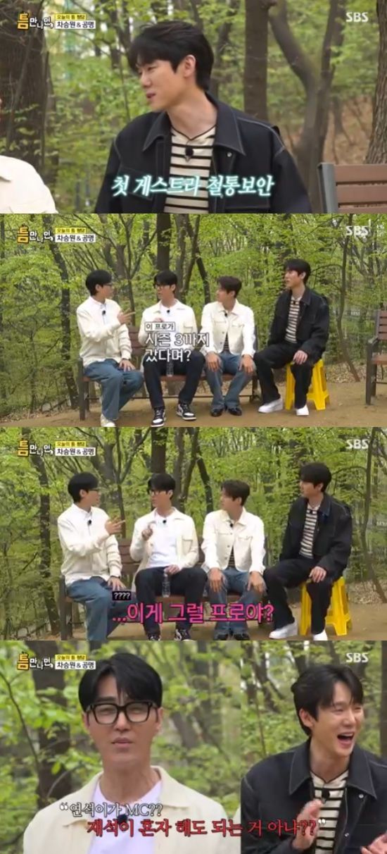 6일 방송된 SBS 예능 프로그램 '틈만 나면,'에서는 '틈 친구'로 차승원, 공명이 출연해 '틈 주인'과 만나 이야기를 나눴다.