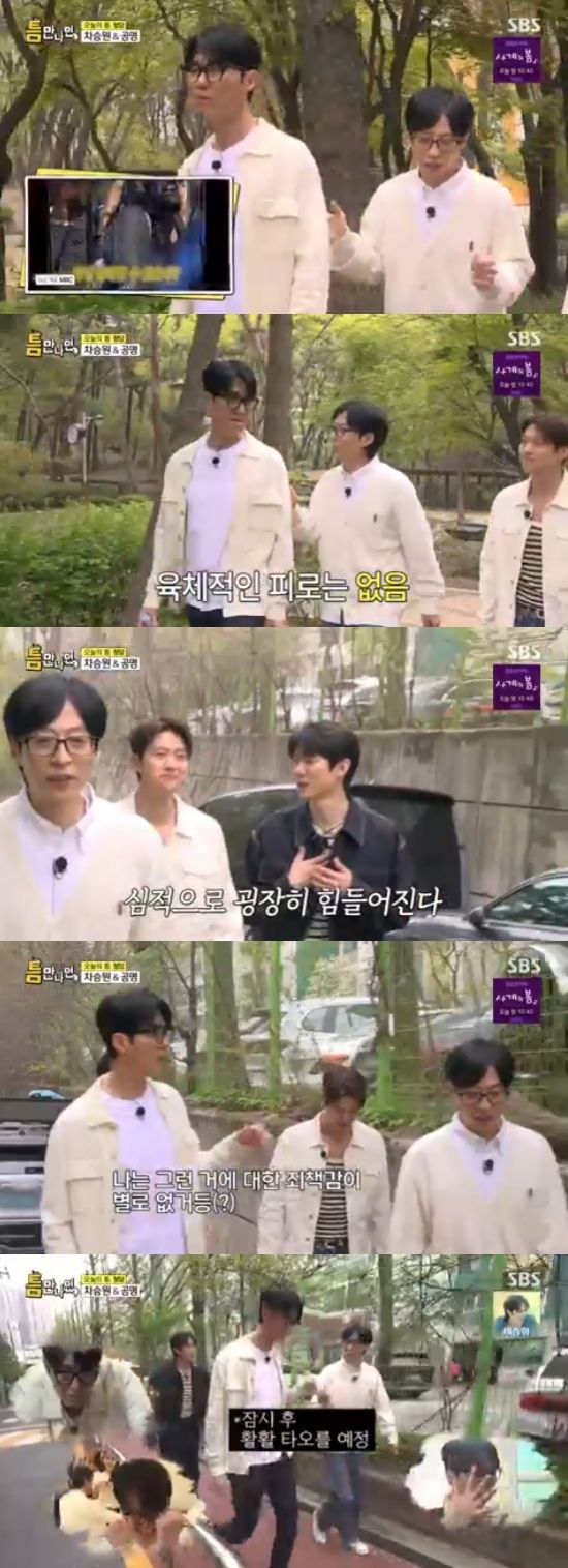6일 방송된 SBS 예능 프로그램 '틈만 나면,'에서는 '틈 친구'로 차승원, 공명이 출연해 '틈 주인'과 만나 이야기를 나눴다.