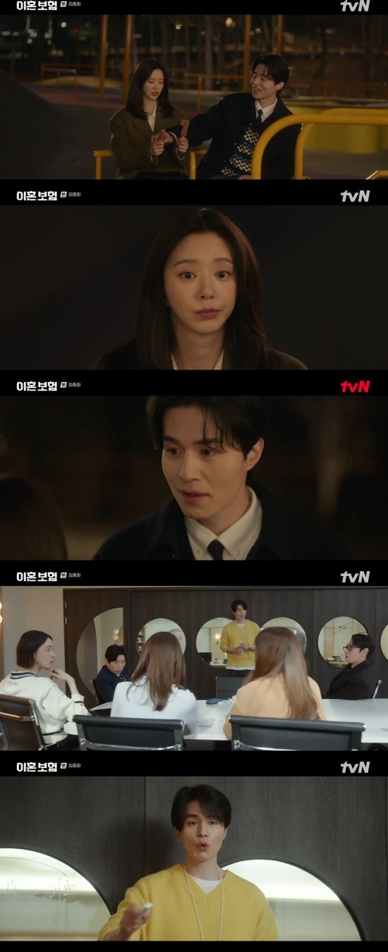 6일 방송된 tvN 월화드라마 '이혼보험' 12회(최종회)에서는 노기준(이동욱 분)이 강한들(이주빈)과 처음 만났던 때를 떠올리는 모습이 그려졌다.