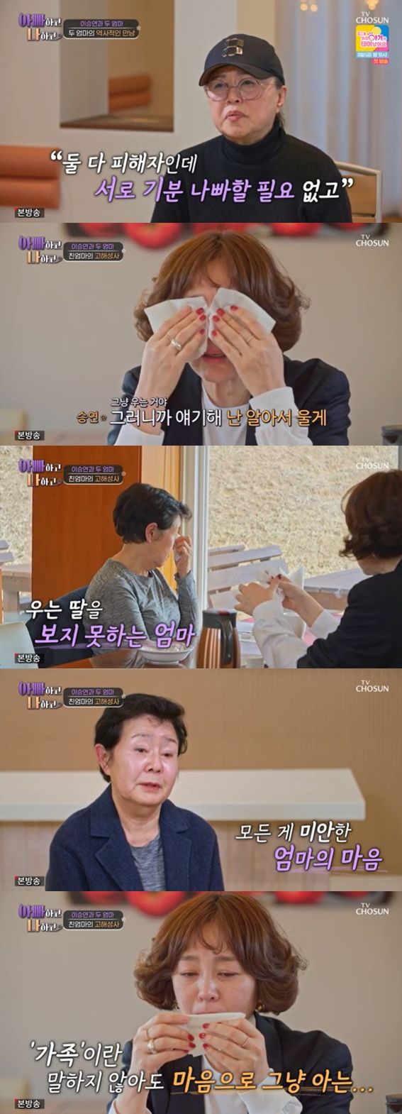 두 어머니의 이야기를 듣던 이승연은 "미안하다고 하면 어떻게 해야 할지 모르겠다"라며 눈물을 보였다.