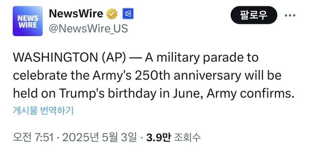 트럼프 생일에 건군 250주년 열병식 컨펌