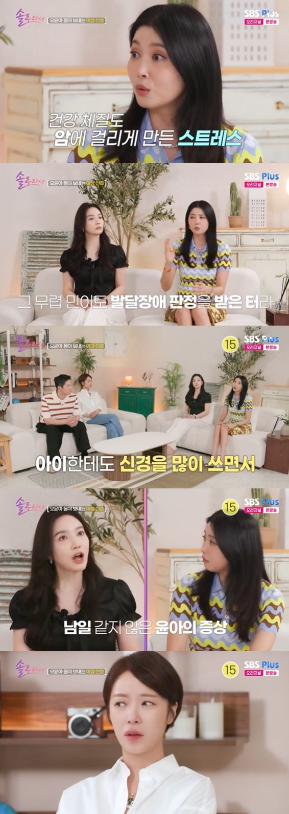 특히 오윤아는 "실제로 아이가 아픈 걸 그때 시점에 알았다. 그때 신경을 쓰면서 과도하게 스트레스를 갑자기 받아서 암이 생겼다. 아이 케어가 힘들고, 남편과의 관계도 안 좋아지고 가정이 깨질까 봐 두려움이 컸다. 속으로 삭히면서 밖에서는 웃으며 촬영했는데, 티를 안 내다보니 몸으로 온 것 같다"라며 갑상선 암에 걸렸던 당시를 회상했다.