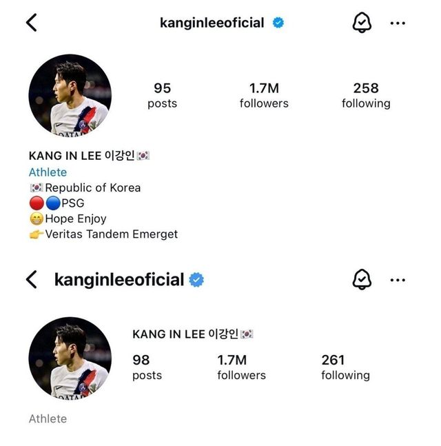 이강인은 이적을 요청하는 듯 현재 자신의 인스타그램 계정 프로필 소개란에 자신의 소속팀 PSG를 지워버려 이적을 암시하고 있다.