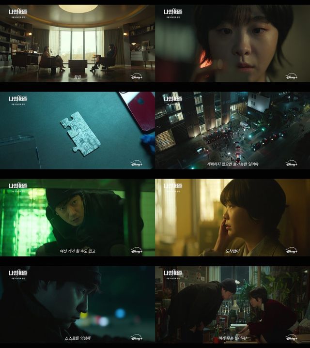 윤종빈 감독의 세련되고 감각적인 연출과 김다미, 손석구의 독특하고 매력적인 케미스트리, 최고의 몰입감을 선사하는 흥미진진한 서스펜스로 기대를 모으는 디즈니+의 오리지널 시리즈 ‘나인 퍼즐’은 오직 디즈니+에서 오는 5월 21일(수) 6개, 5월 28일(수) 3개, 6월 4일(수) 2개의 에피소드를 공개, 총 11개의 에피소드로 만나볼 수 있다.