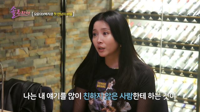 직후, 오윤아는 “언니는 결혼 생활을 어떻게 유지해?”라고 물었다. 백지영은 “관계에 있어서 절대 일방은 없다. 다 쌍방이다. 남편이 나한테 잘 하니까 나도 잘 하는 거다. 그리고 아직까진 남편이 너무 좋다. ‘내 사전에 이혼은 없다’는 마음으로 살고 있다”고 솔직하게 밝혀 공감을 자아냈다. 두 사람의 ‘찐친 케미’ 폭발한 만남이 끝나자, 이번엔 ‘극I 솔로언니’ 이민영의 일상이 공개됐다.