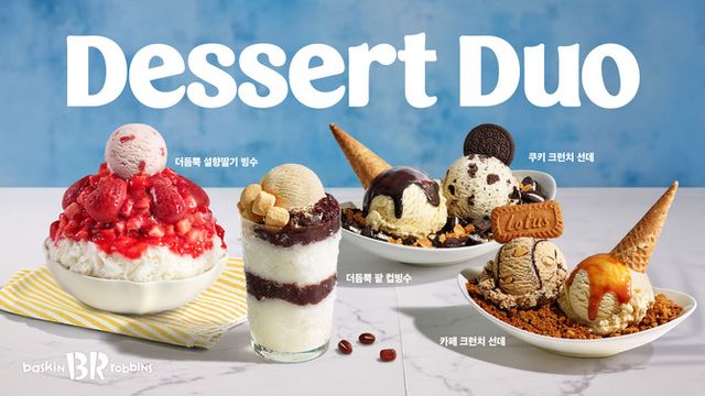 '더 듬뿍 팥빙수'는 기본에 충실한 오리지널 팥빙수를 재해석한 제품으로, 부드러운 우유 얼음 베이스에 고운 팥, 인절미 떡, 콩고물 등 재료를 아낌없이 담아냈다. 원하는 아이스크림을 추가해 취향에 따라 즐길 수 있으며, 혼자서도 부담 없이 맛볼 수 있는 컵빙수 형태도 함께 출시됐다. '카페 크런치 선데'는 자모카 아몬드 훠지, 부드러운 바닐라 플레이버 위에 카라멜 소스와 크럼블 토핑으로 식감을 더해 진한 커피 풍미와 고급스러운 단맛을 조화롭게 담았다. '아포가토(Affogato)'는 따뜻한 에스프레소를 아이스크림에 부어 먹는 방식으로 부드러움과 쌉쌀함이 어우러지는 신제품이다.