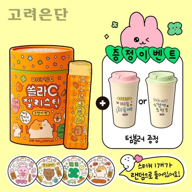 고려은단이 카카오톡 선물하기에서 인기 캐릭터 일러스트레이터 최고심과 협업한 '쏠라C 젤리스틱' 구매 고객들에게 최고심 특별 디자인 텀블러와 스티커를 증정하는 이벤트를 진행한다.
