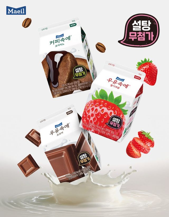 매일유업(267980)이 가공유 브랜드 '우유속에' 3종(딸기과즙, 코코아, 커피속에 모카치노)을 설탕 무첨가로 리뉴얼 출시했다.