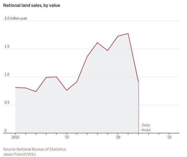 토지 매매 거래 가력은 2022년 48% 급락했는데 이 데이터는 2023년 초에 사라졌다.