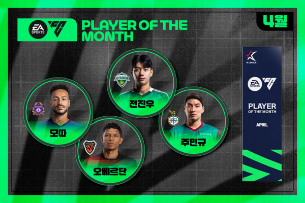 7일 한국프로축구연맹은 보도자료를 통해 "2025시즌 4월 'EA SPORTS 이달의선수상(EA SPORTS Player Of The Month)'의 주인공을 선정하는 팬 투표가 8일 목요일부터 11일 일요일까지 4일간 실시된다"라고 밝혔다.