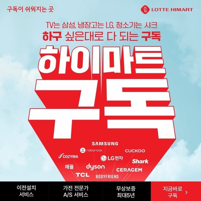 구독 가능 품목은 삼성전자와 LG전자 외 로보락 로봇청소기, 샤크 무선청소기, 다이슨 공기청정기 등 약 800여 종이며 ‘에어컨 미리 장만’ 특별 세일도 함께 실시한다.