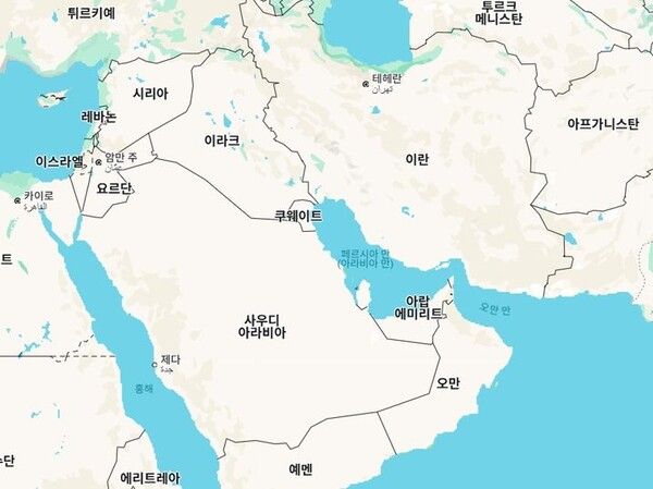 페르시아만은 이란, 사우디아라비아, 쿠웨이트, 바레인, 카타르, 아랍에미리트(UAE) 등에 둘러싸인 해역이다. 현재 이란 지역인 고대 페르시아 제국에서 이름이 유래했다.