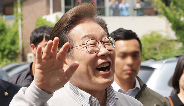 다음은 7일 밝은 표정의 이재명 민주당 대선 후보 사진이다.