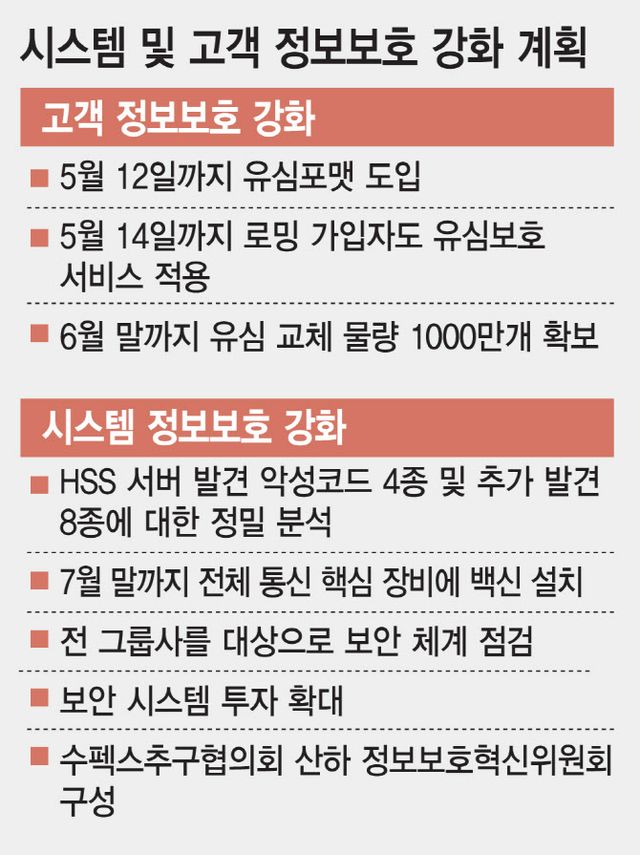 한편 SK텔레콤은 유심보호서비스 자동가입과 유심 교체를 중심으로 고객 보호 조치를 강화하고 있다. 유심보호서비스는 유심 정보와 단말기 정보를 결합해 복제 유심이 다른 기기에서 작동하지 못하도록 원천 차단하는 방식이다.