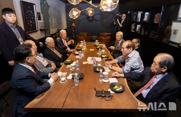 뉴시스 보도에 따르면, 김무성·김종하·권해옥·나오연·목요상·신경식·유준상·유흥수·이해구 국민의힘 상임고문은 이날 오후 서울 여의도 국민의힘 중앙당사에서 기자회견을 열고 "나라도 어렵고 당도 굉장히 어려운 시점에서 우리에게 필요한 것은 후보 단일화"라며 이같이 말했다. 이들은 앞서 서울 모처에서 긴급 회동에 나서 의견을 모았다.