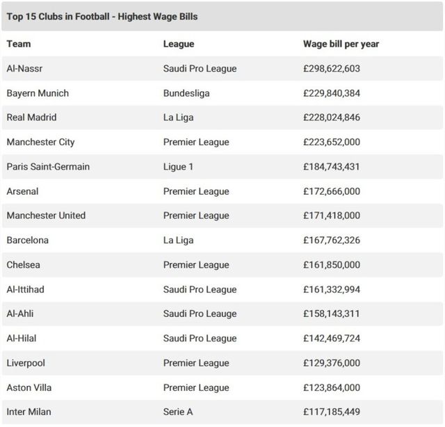 (엑스포츠뉴스 용환주 기자) 세계에서 연봉이 가장 높은 팀이 공개됐다.