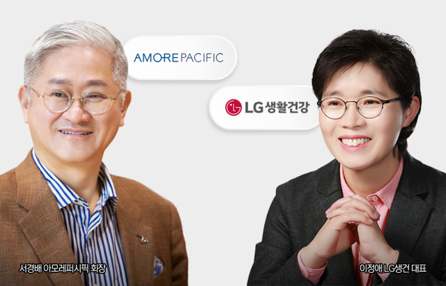 (왼쪽부터) 서경배 아모레퍼시픽그룹 회장, 이정애 LG생활건강 대표. 그래픽=이찬희 기자