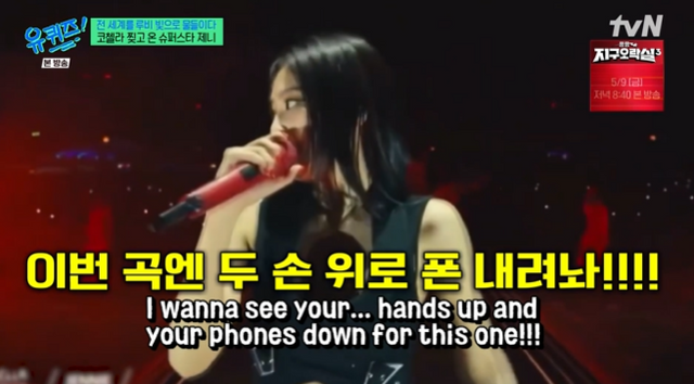 ‘폰 다 내려놔 내가 찢어줄게’라고 화제를 모은 무대 중 멘트에 대해서도 밝혔다. 이를 두고 제니는 “진짜 즉흥이었다. 저도 모니터하면서 놀랐다. 원래 다른 멘트를 준비했었다”며 “‘폰 다 내려놔, 즐겨’라는 마음가짐이었다”고 떠올렸다.