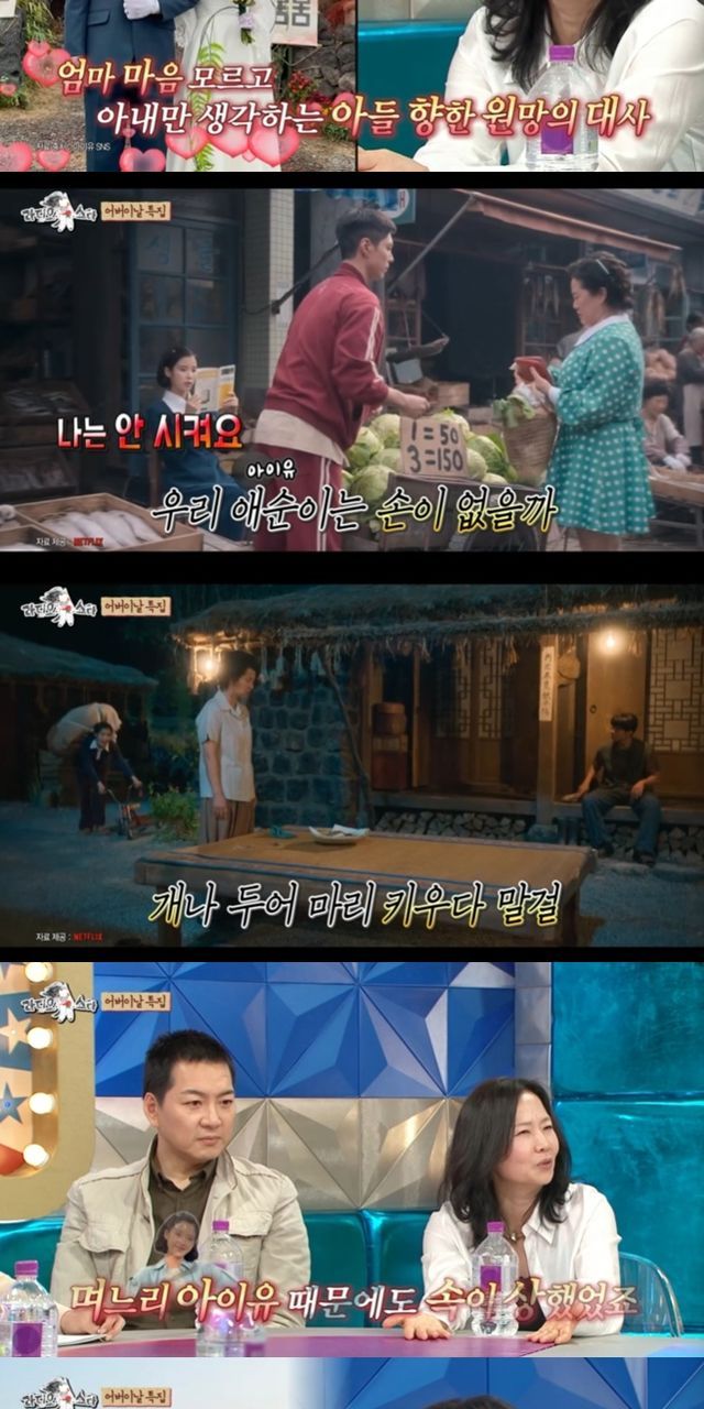 또 "애순이 때문에도 속이 상했다. 사람들이 어떻게 애순이, 아이유의 따귀를 때릴 수 있냐고 사람들이 보면서 욕을 많이 했다. 한번에 성공시켜야 한다는 부담이 있었다. 아이유가 현장에서 너무 열심히 하는 성향이 있어서 열 대라도 때리면 맞겠다는 마음으로 하더라"라며 아이유를 칭찬했다.