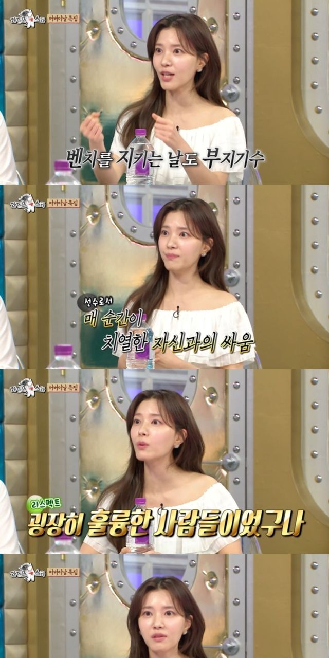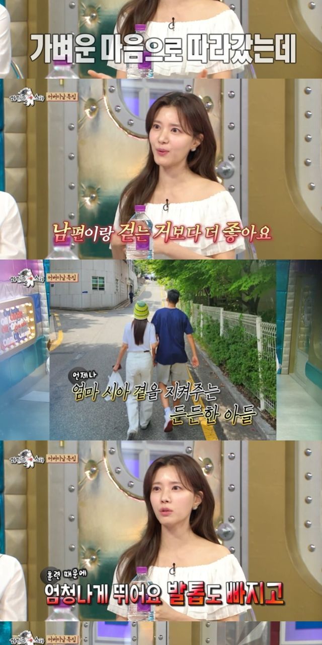 정시아는 "아들에게 운동을 시켜보니 너무 힘들더라. 동계훈련이 제일 힘든데 엄청나게 뛴다. 발톱도 빠지고 굳은살이 떨어져서 양말이 피로 젖는다. 어떤 아이는 봉와직염에 걸린다. 어떨 때는 준비를 다 해했는데 벤치에만 있어야 한다. 물 떠다주고 수건 갖다주면서 기다림의 시간을 견뎌야 한다. 매순간이 극한의 자신과의 싸움이다"라고 설명했다.