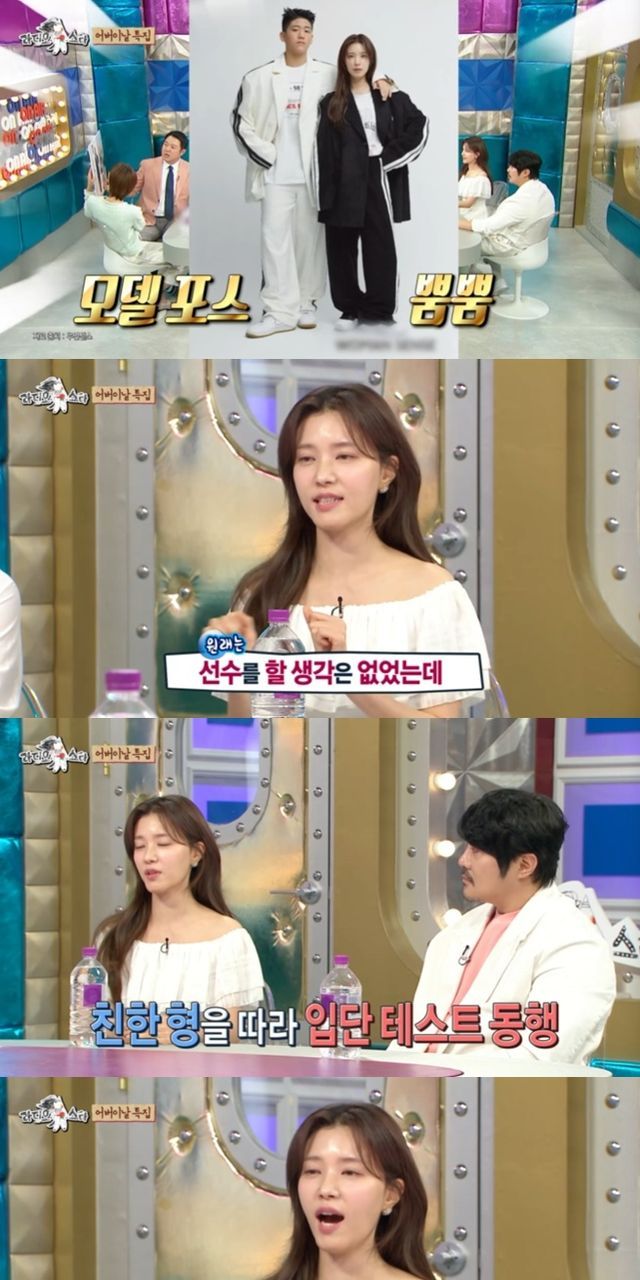 정시아는 "원래는 선수를 할 생각은 없었다. 공을 엄청 무서워해서 두려움을 극복하려고 농구를 초등학교 4학년 때 시작했다. 친한 형이 테스트 보는데 구경할 겸 같이 보라고 보냈는데 합격을 한 거다. 요즘은 남편과 걷는 것보다 좋다. 내 이상형인 것 같다. 든든하고 좋다"라며 너스레를 떨었다.