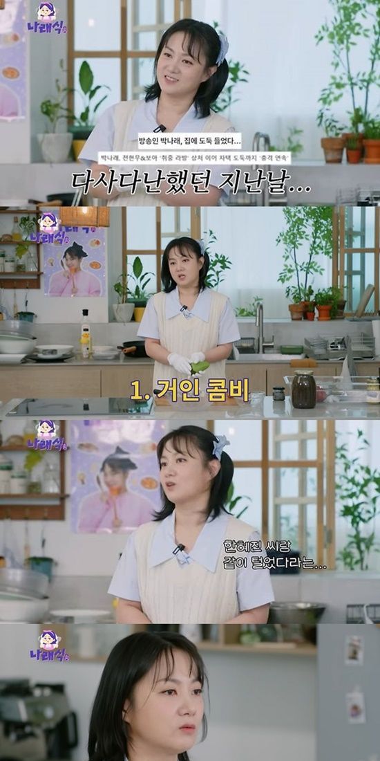 제작진이 자택 도난 사건을 간접적으로 언급하며 "잘 마무리됐냐"고 묻자 박나래는 "잘 마무리됐다. 지난주 금요일 날 잃어버렸던 모든 물건을 흠집 하나 없이 돌려받았다"라고 털어놓았다.
