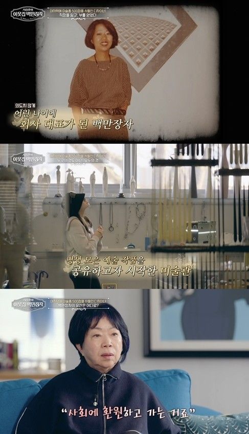 7일 방송된 EBS, E채널 공동 제작 '서장훈의 이웃집 백만장자'(이하 '이웃집 백만장자')에서는 '우리나라 1세대 CI 디자이너' 구정순이 출연해 자신의 인생 이야기를 들려줬다.