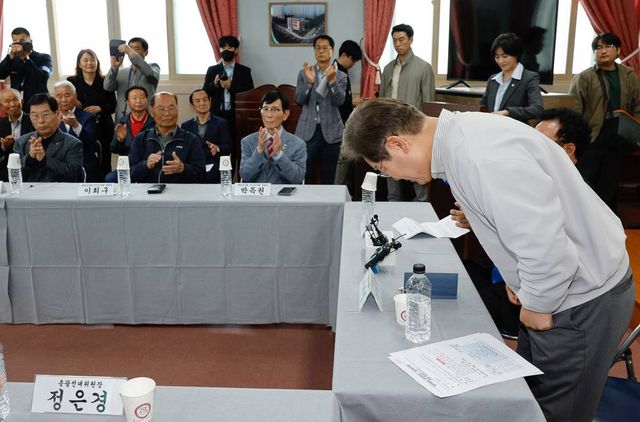 이재명 더불어민주당 대통령 후보가 2차 골목골목 경청투어 마지막 날인 지난 7일 오후 전북 익산시 대한노인회 익산지회에서 열린 임원과의 간담회에서 참석해 인사하고 있다 / 뉴스1